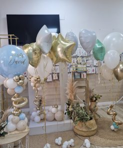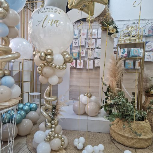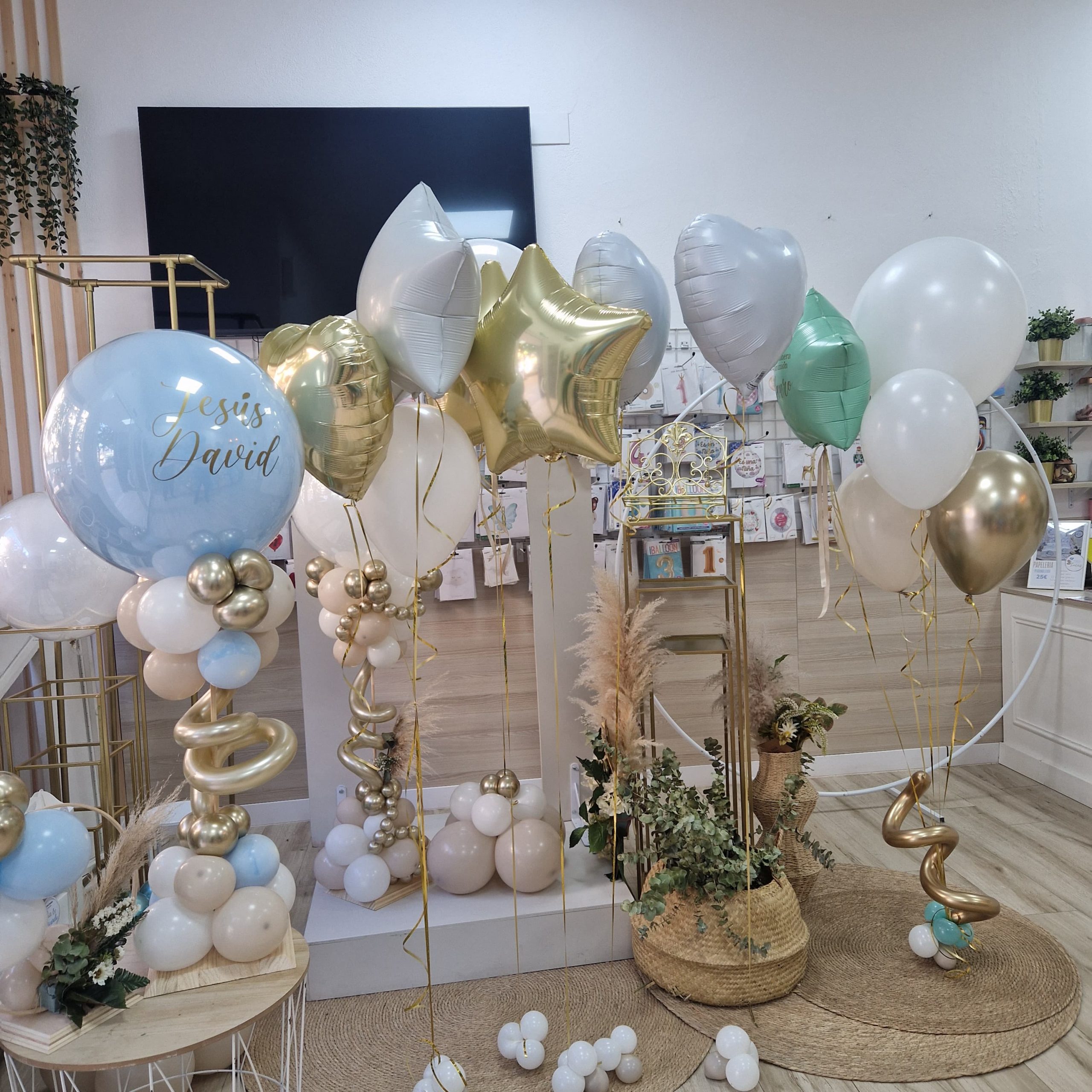Haz que el día de la Primera Comunión sea aún más especial con nuestro Pack Especial Comuniones, un conjunto de decoración cuidado al detalle que combina elegancia, ternura y estilo. Diseñado para adaptarse a cualquier espacio, este pack viene totalmente montado y listo para colocar, ideal para decorar mesas, entradas o rincones especiales de la celebración.